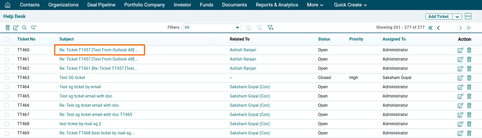 7. The imported ticket will be visible in the Help Desk list View page.