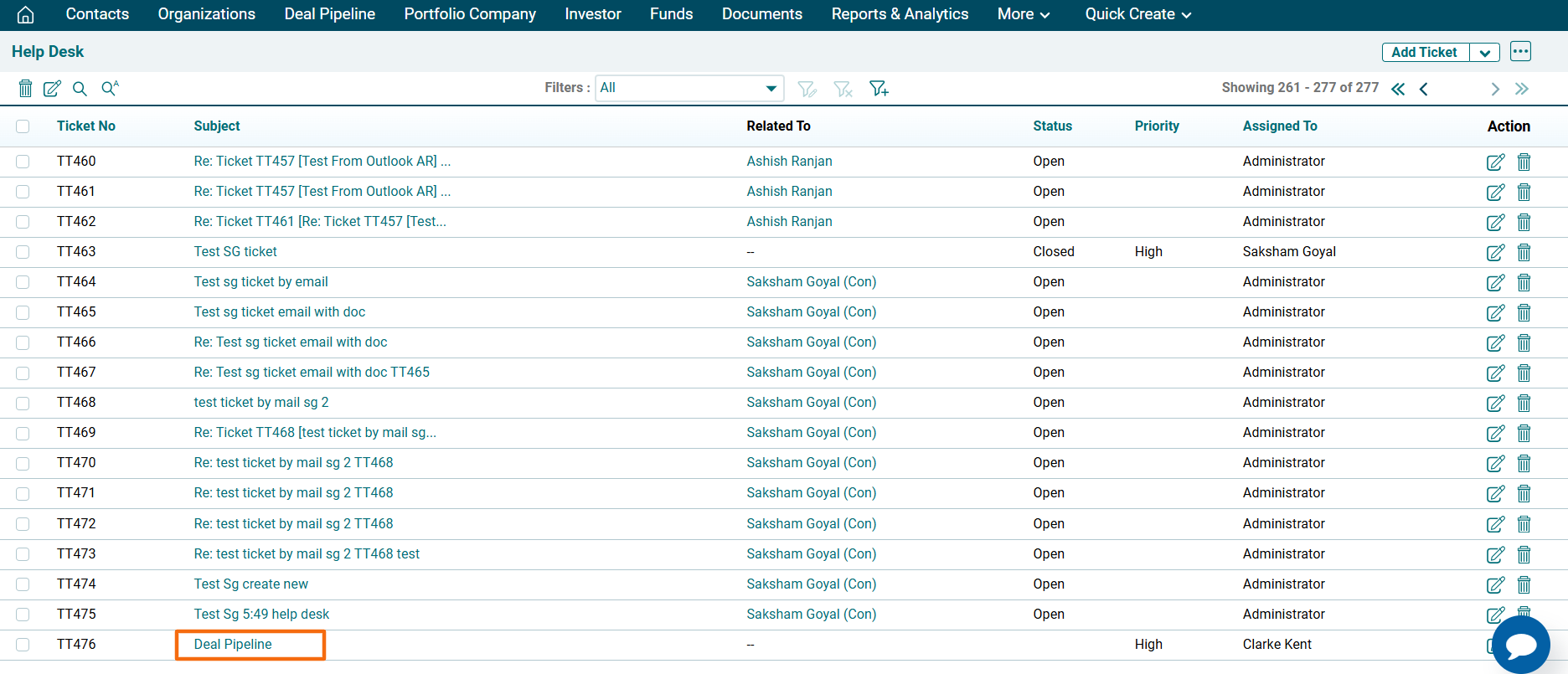 3. The ticket is visible on the Help Desk page.