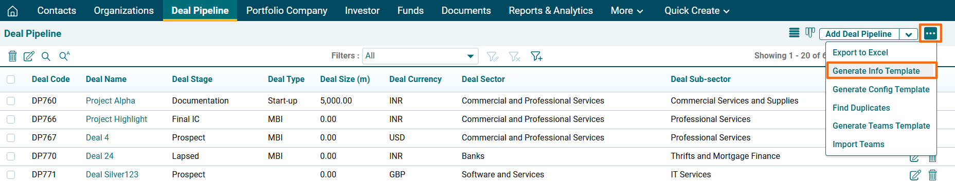 2. Click on the three dot menu in the top right corner. Click on Generate Info Template. The Excel file will download.