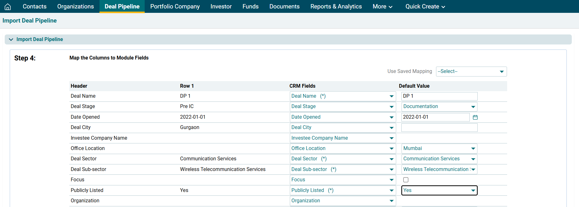 To bulk upload historical deal pipeline data to PEFO, follow the below steps: