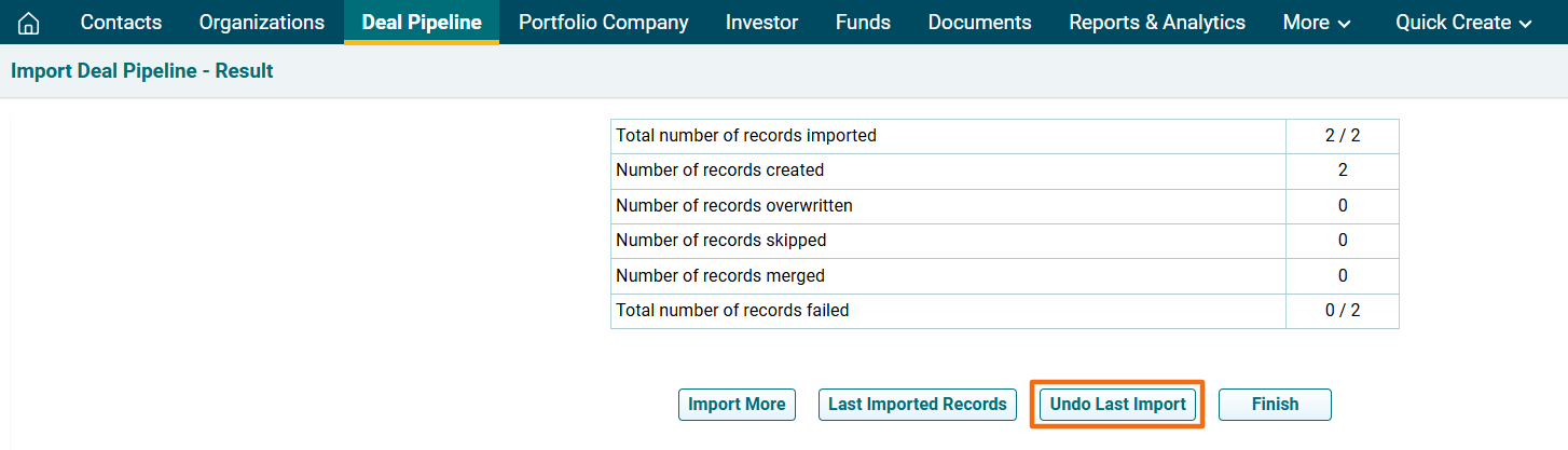 12. In case of a failed import, click on Undo Last Import.