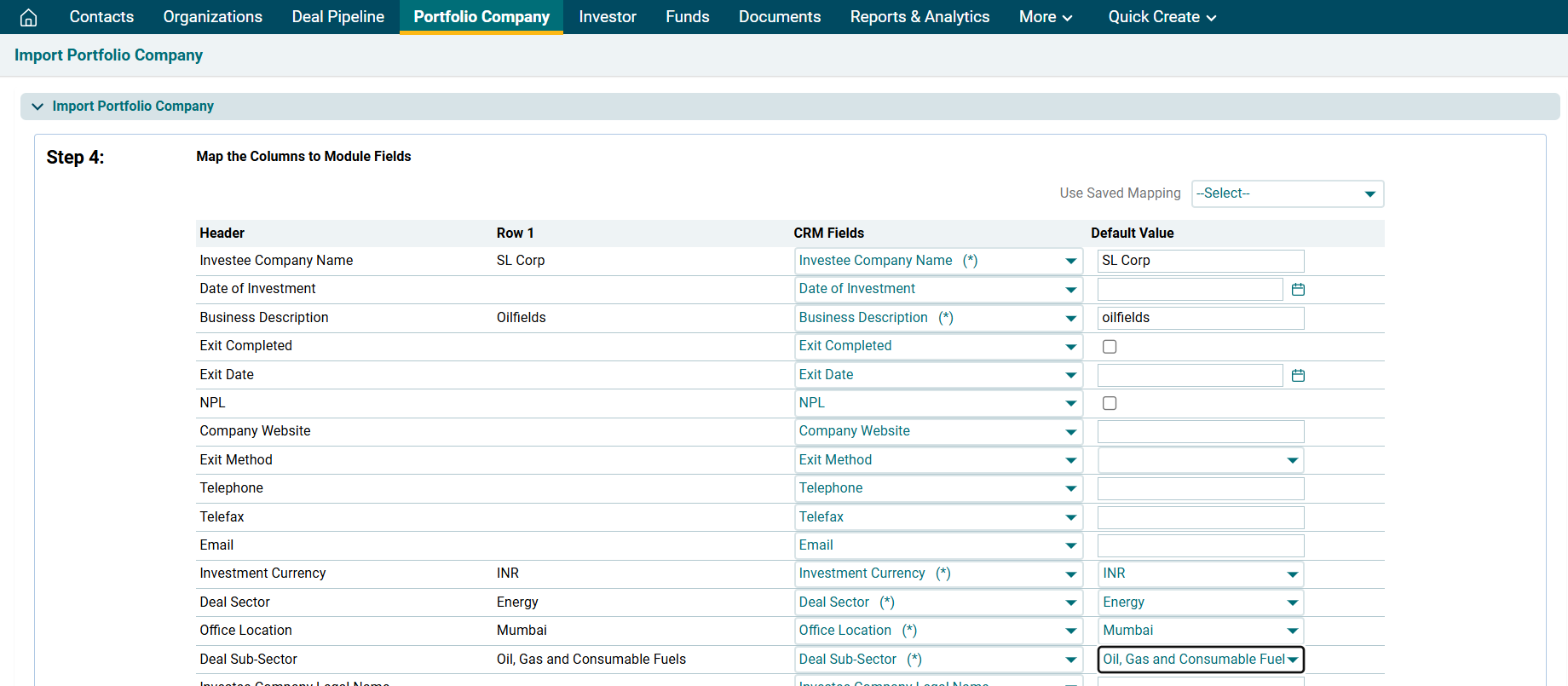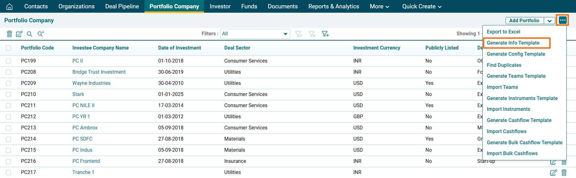 1. Click on Portfolio Company in the main menu.