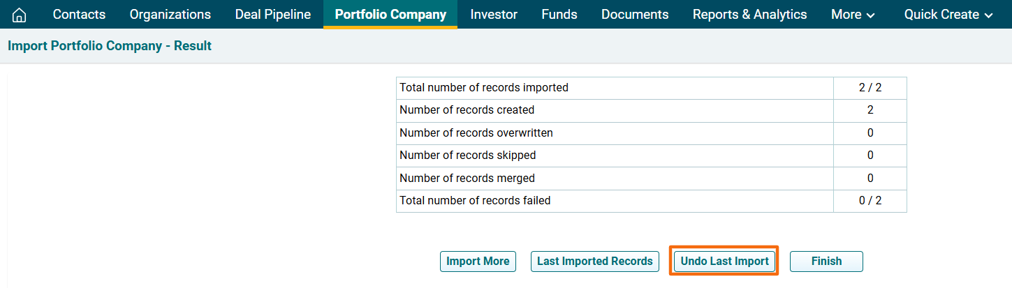 12. In case of a failed import, click on Undo Last Import.