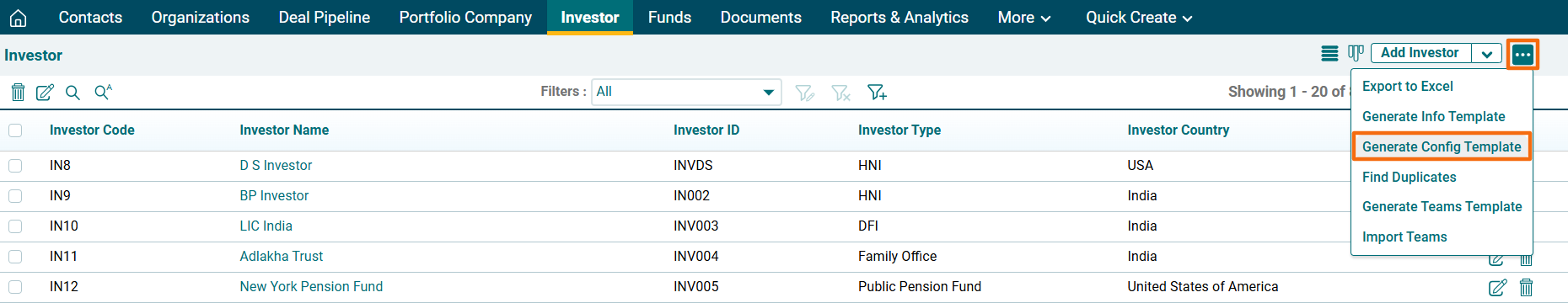 2. Click on the three dot menu in the top right corner. Click on Generate Config Template. The Excel file will download.