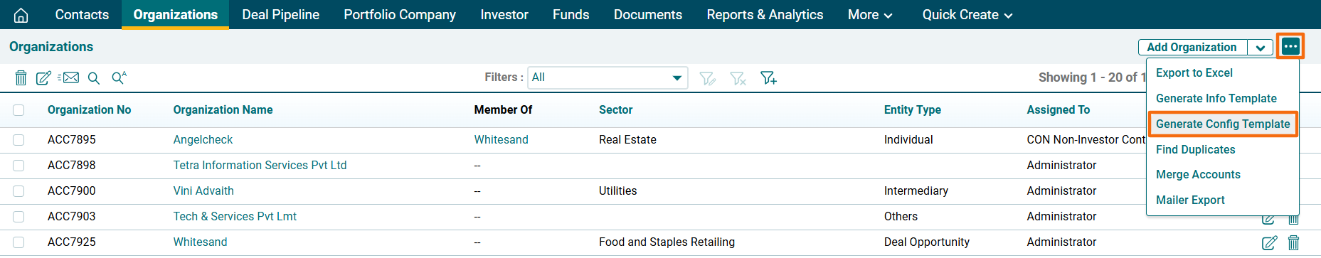 2. Click on the three dot menu in the top right corner. Click on Generate Config Template. The Excel file will download.