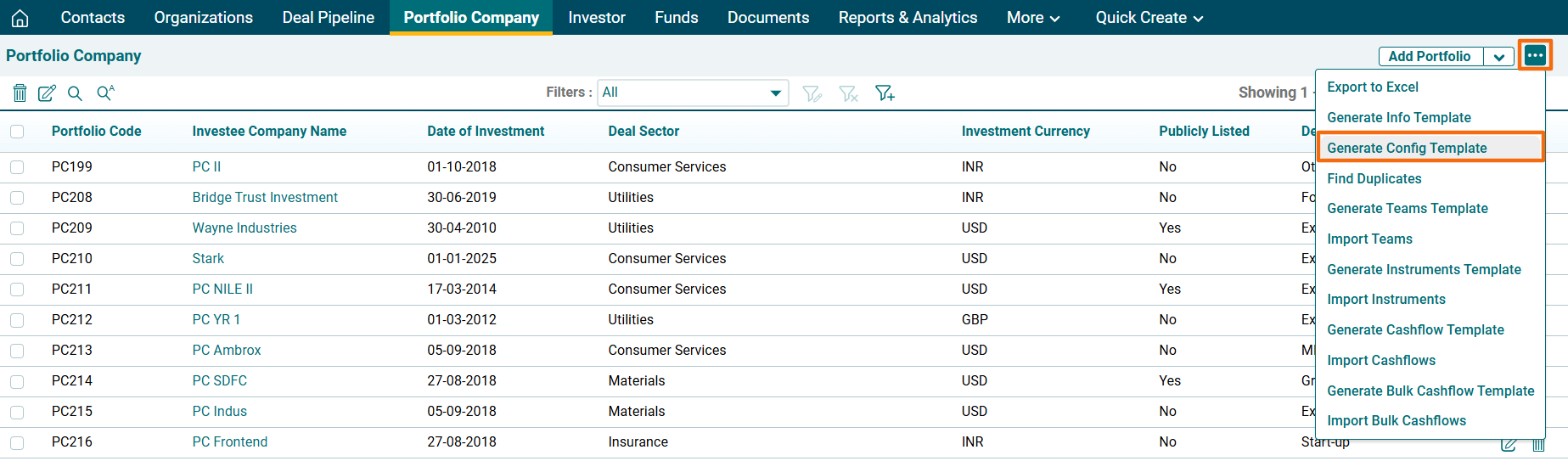 1. Click on Portfolio Company in the main menu.