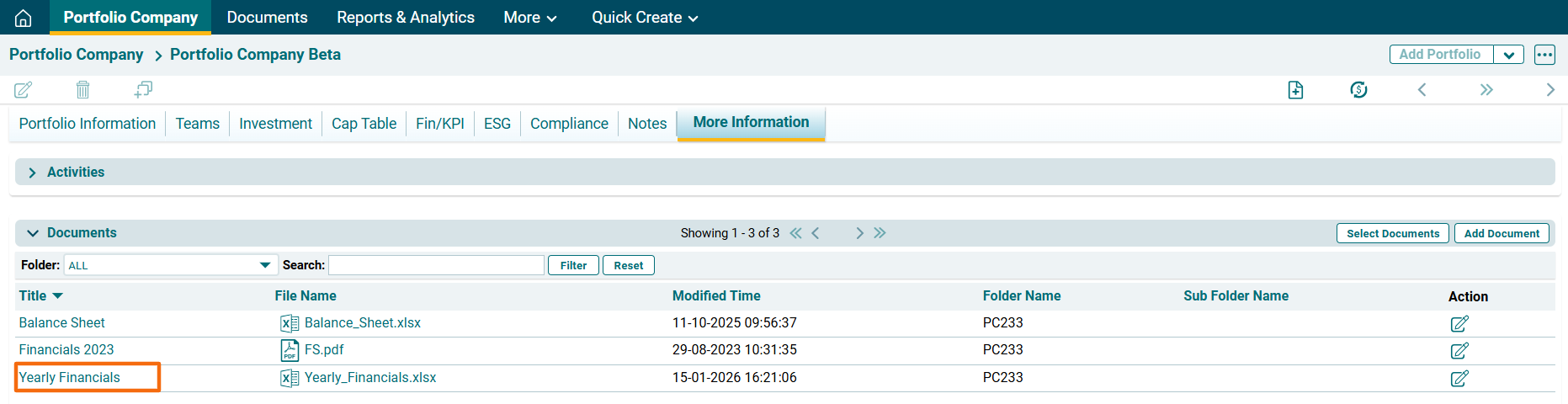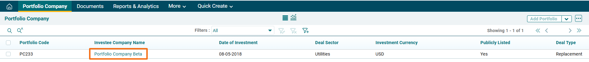 1. Click on Investee Company Name.