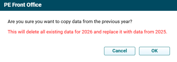 ) button in the top right corner of the panel to copy data from previous year. A pop up window is displayed. Click OK.