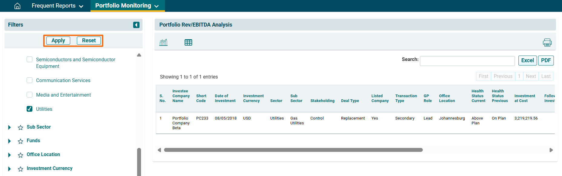 To view and download Portfolio Rev/EBIDTA Analysis report, follow the below steps: