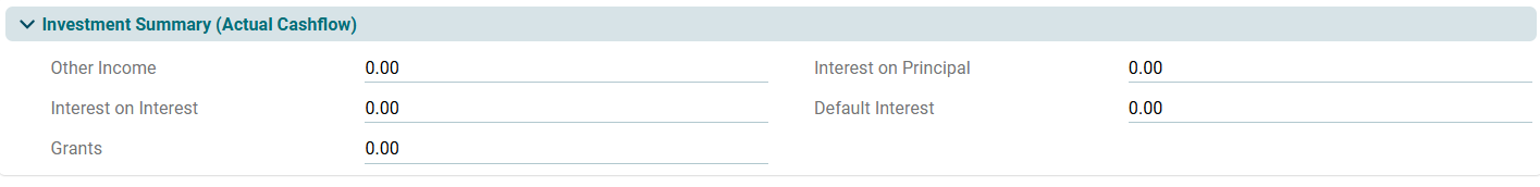 This panel captures data from the Investment Tab based on the underlying actual cashflows.