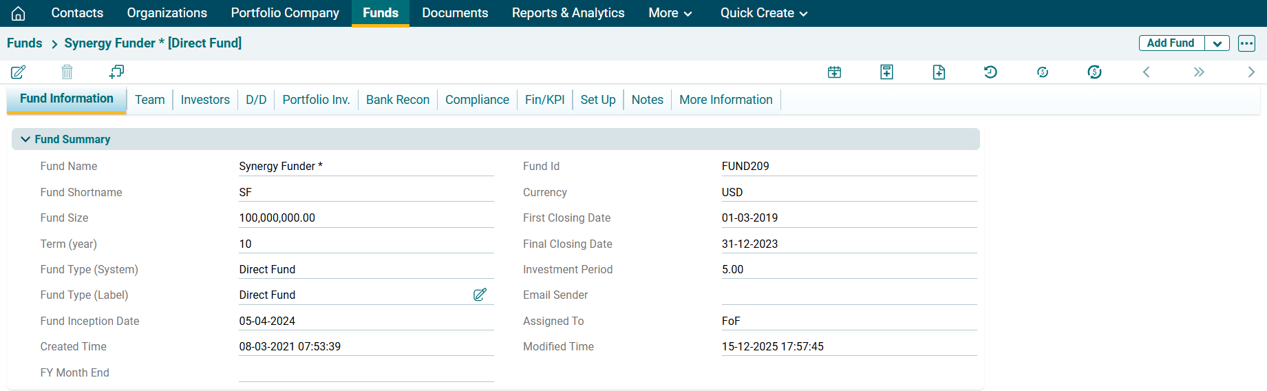 3. Click on Save after entering the details. It appears in the Fund Information tab under Fin/KPI setup panel.