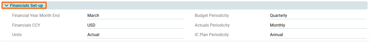 1. Click on the Fund Information tab. Scroll down to the Fin/KPI Set up panel.