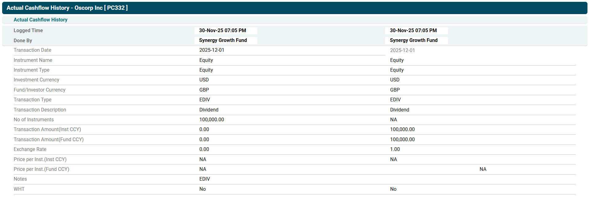 3. The added cashflow will be displayed in the Actual Cashflow Panel.