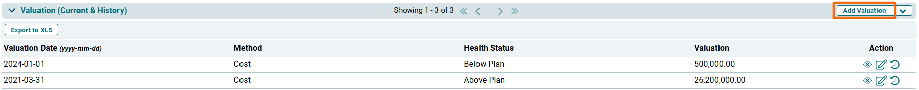 - Date of Valuation: Displays the date of valuation