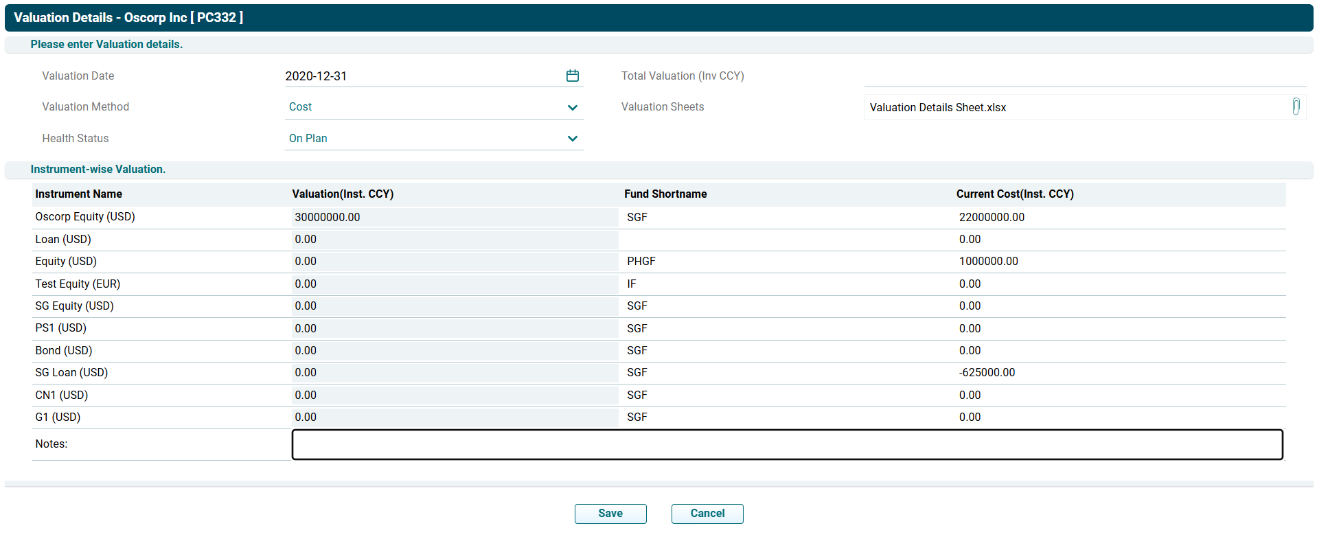 ) icon in the Action column. The Valuation Details window is displayed. Update the details and click Save.