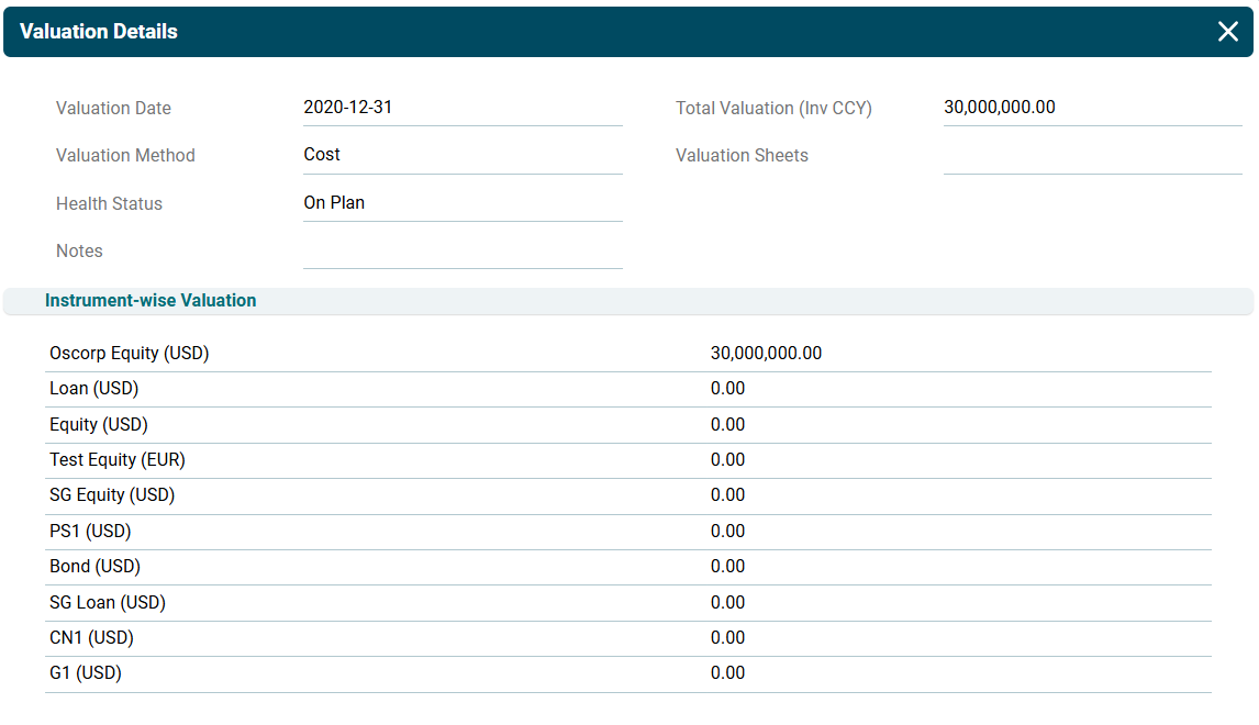 2. The Valuation Details window is displayed.