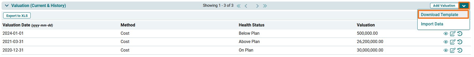 1. Click on the down arrow button next to Add Valuation button. Click on Download Template.