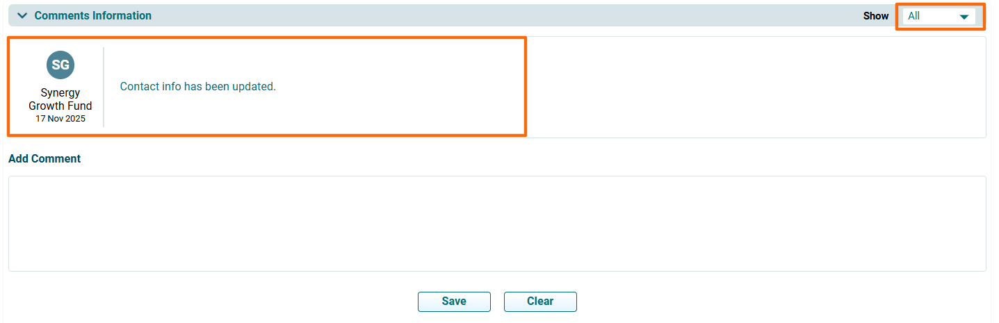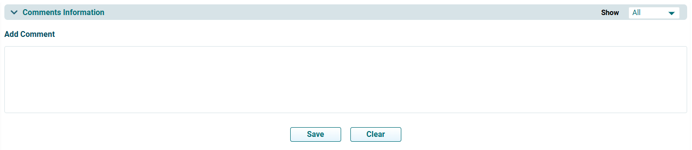 Once you have added a comment, it cannot be deleted. It is always displayed in the Comments section. You can also apply the Show filter to see relevant comments.