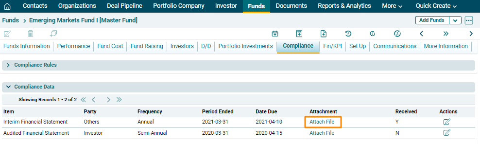 1. Click on Attach File in the Attachment column.