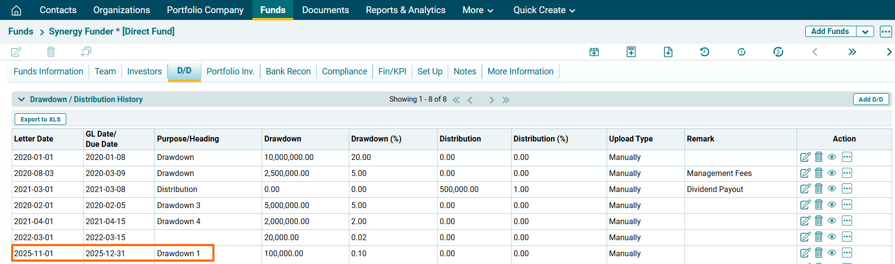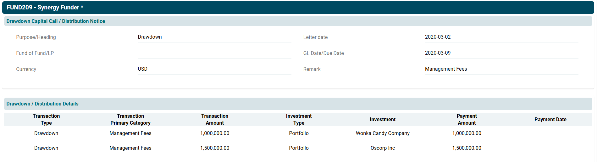 - Transaction Type: Choose transaction type, i.e., Drawdown or Distribution.
