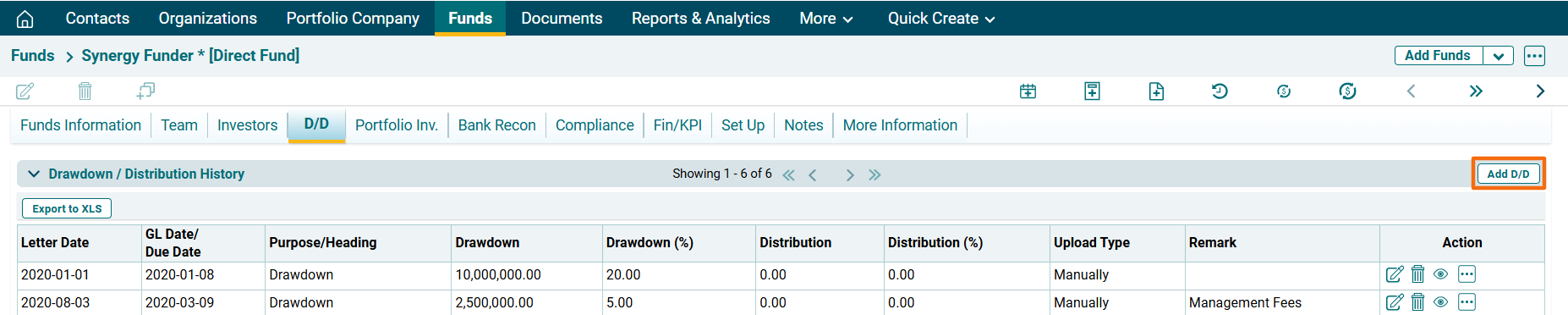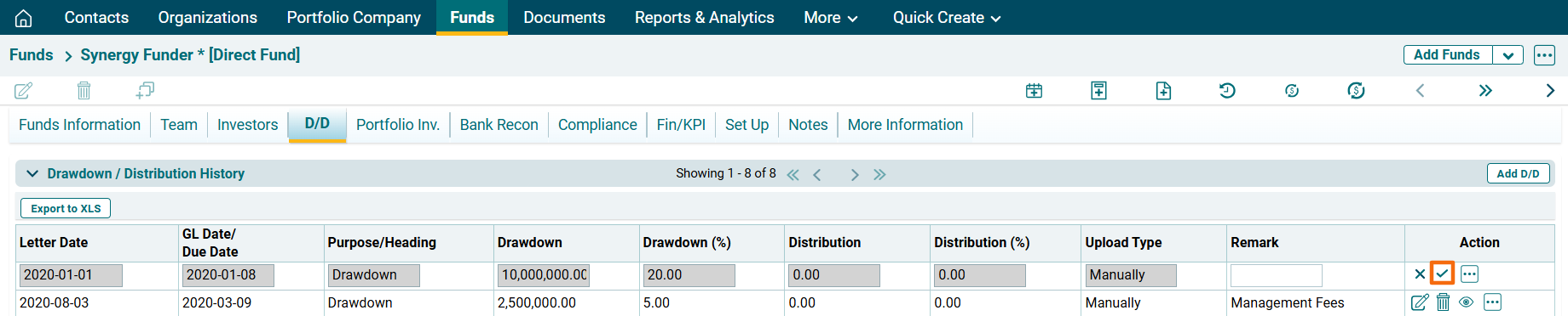 - Investment: Choose the name of the portfolio company in which investment has been made.