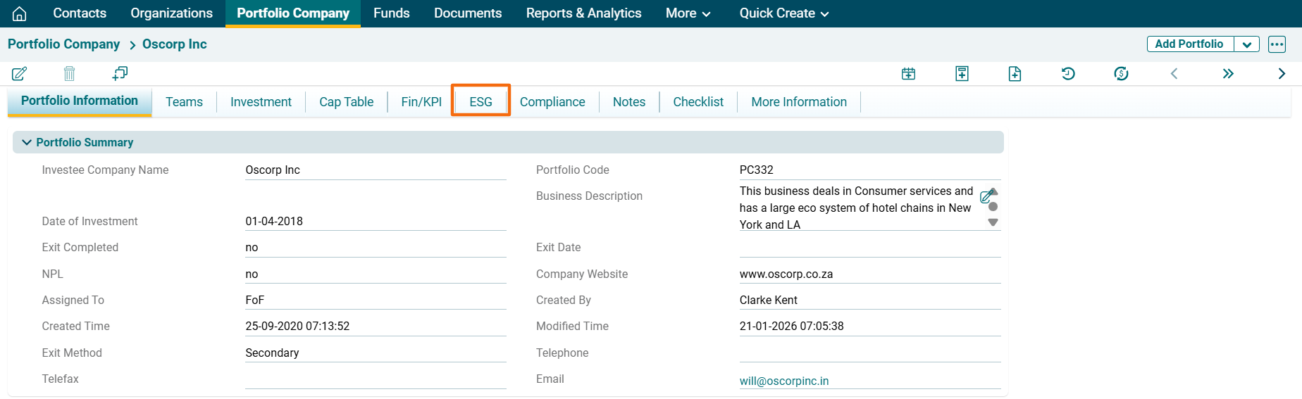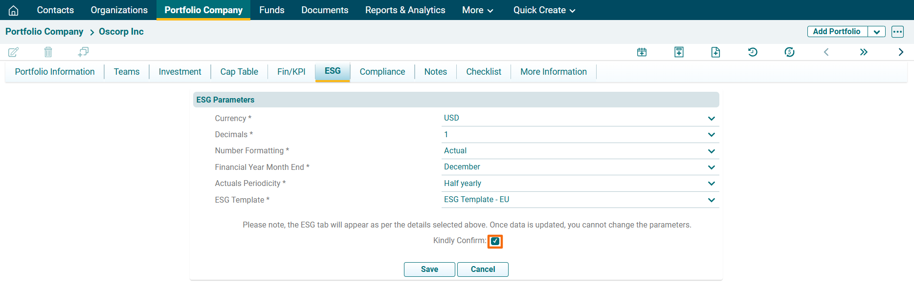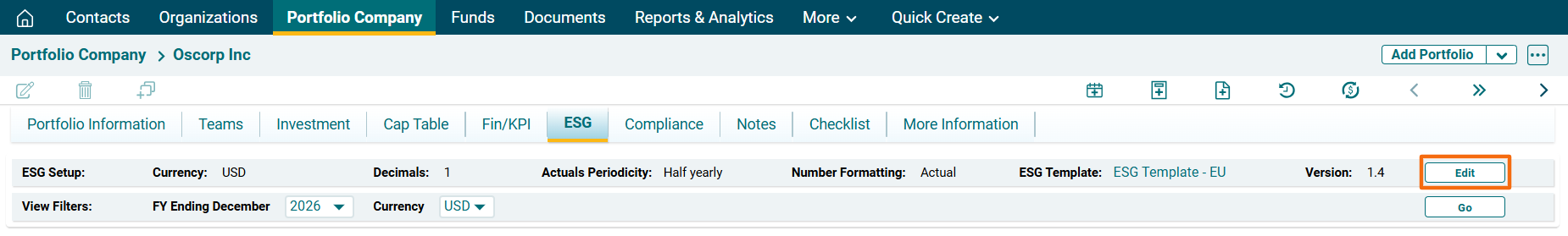 2. To setup ESG parameters, click on Edit button in the top right corner.