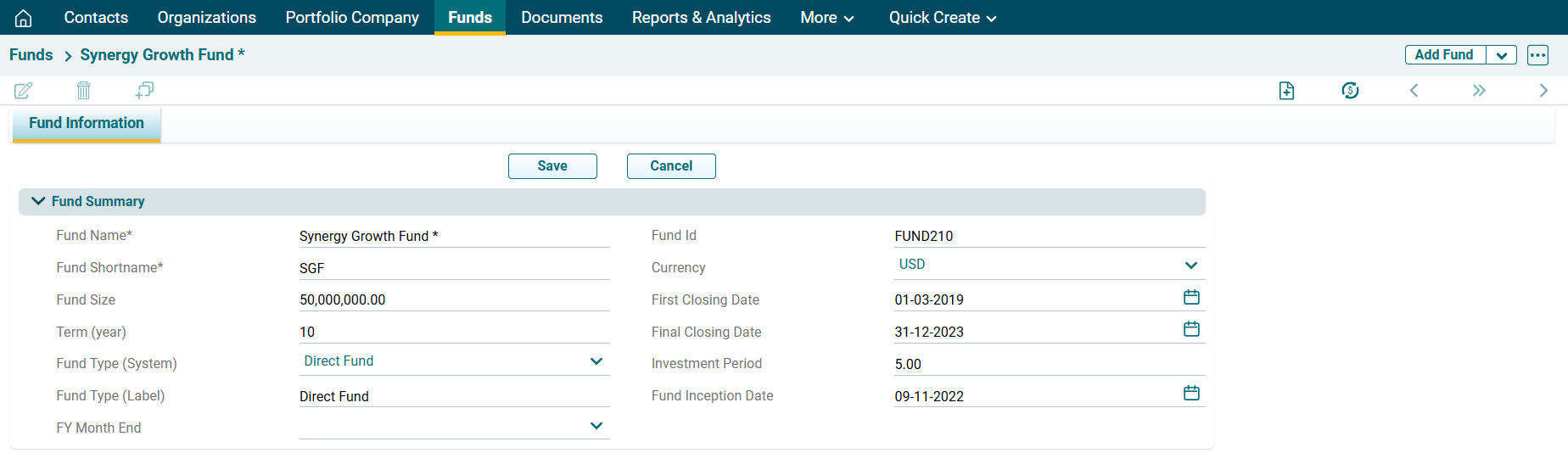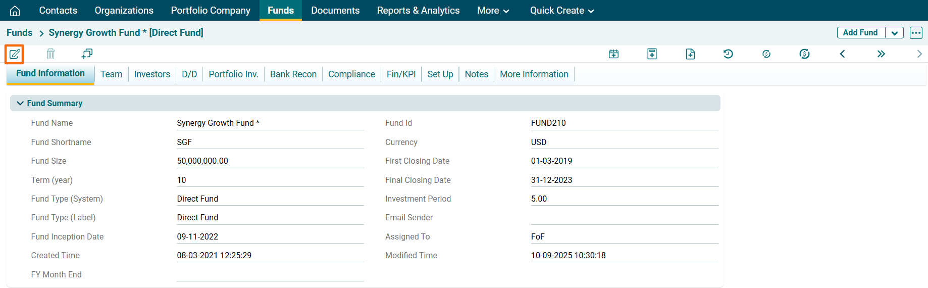 To edit a Fund in Record View, follow the below steps: