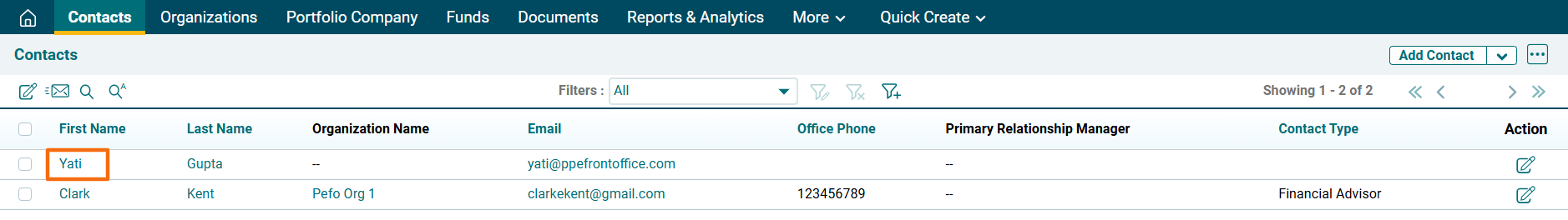 1. Click on Contact to view its corresponding emails.