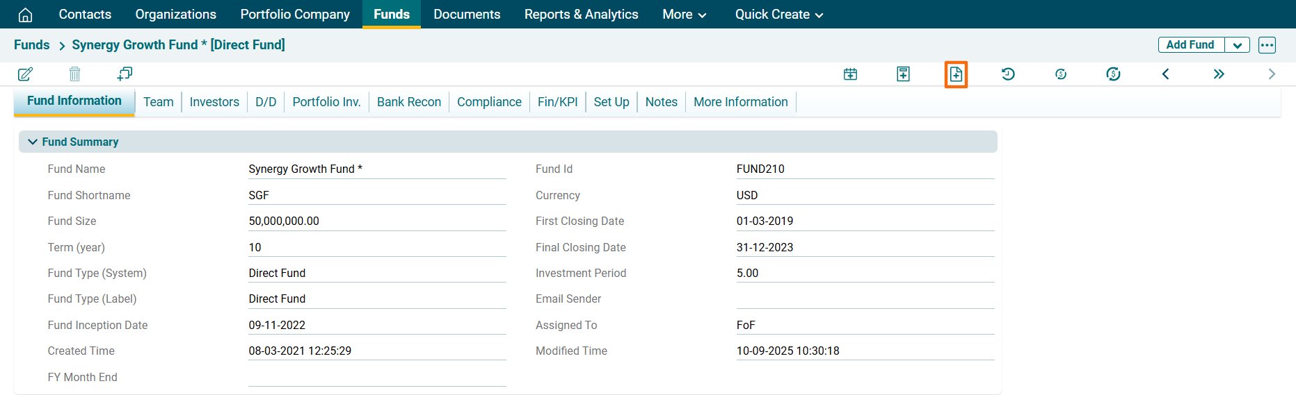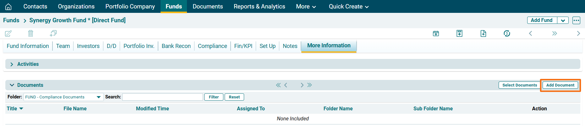 1. Click on Fund Name for which documents are to be uploaded.