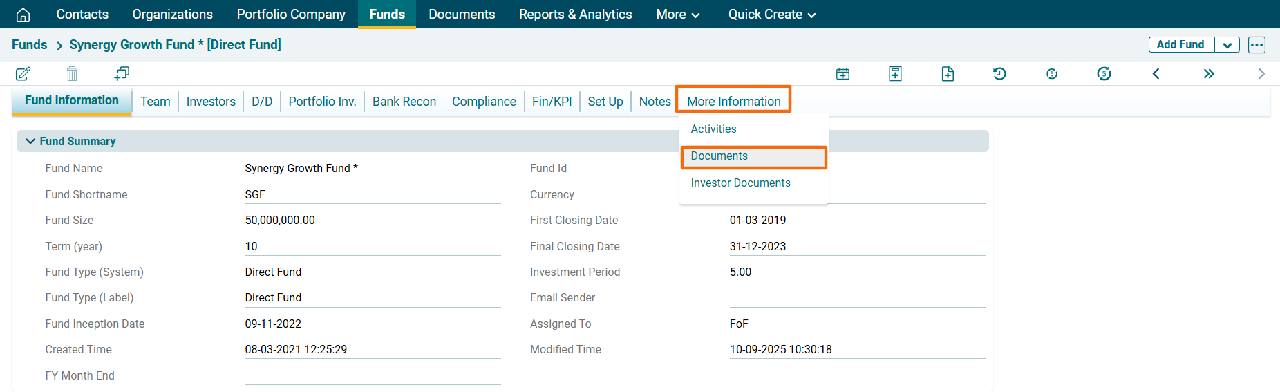 Alternatively, navigate to the More Information Tab and Click on Documents.
