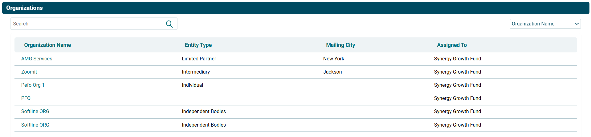 3. Select a contact or Organization from the data.