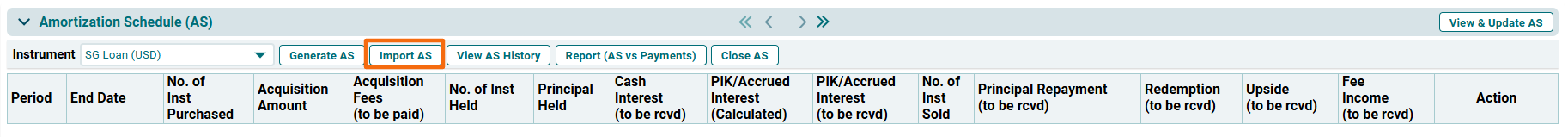 To upload an Amortization Schedule, follow the below steps: