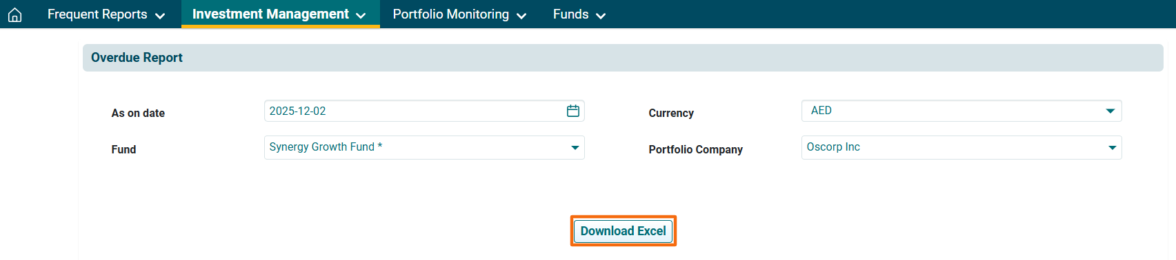 - Portfolio Company: Choose the portfolio company from the dropdown list.