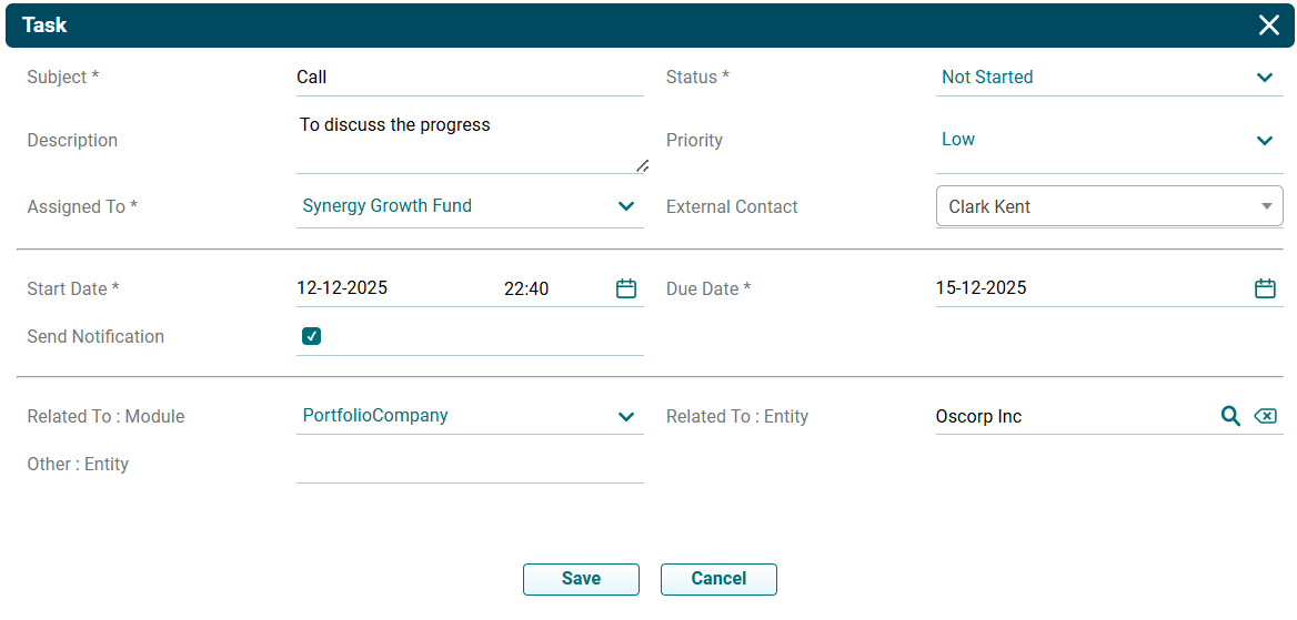 - Related To (Module): Task gets related to the module automatically.