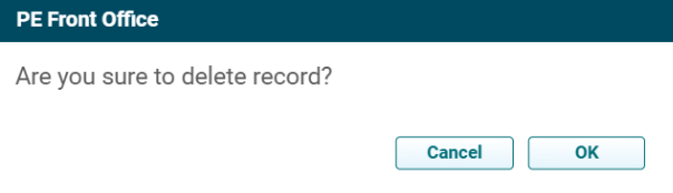 6. To delete an instrument, click the Delete () icon in the Actions column. The delete window is displayed. Click OK to delete the instrument record.