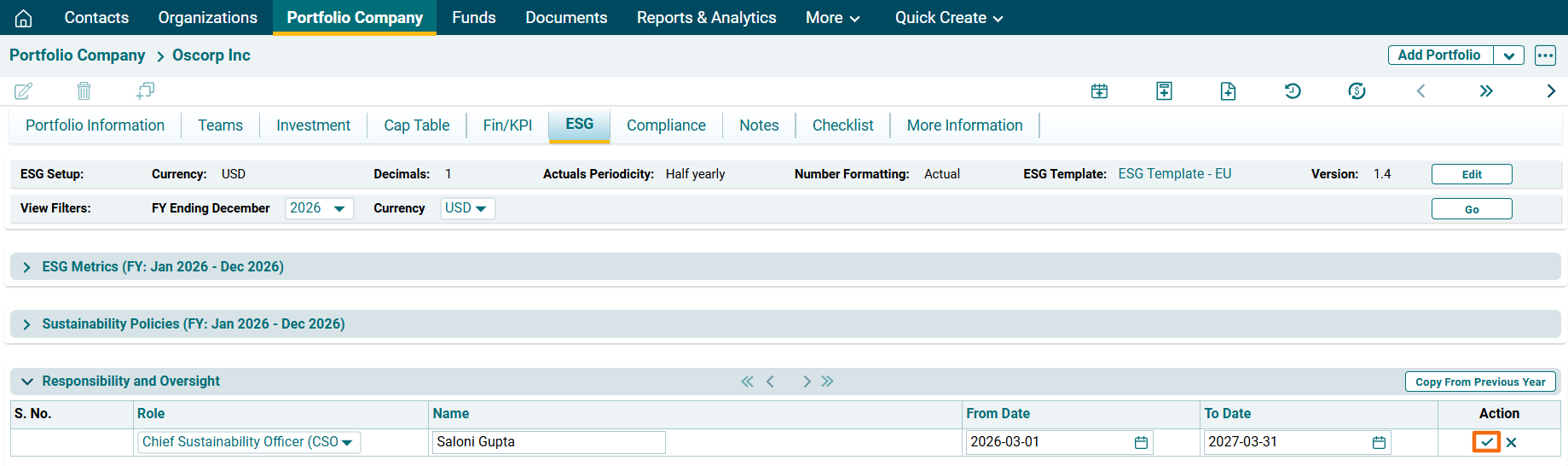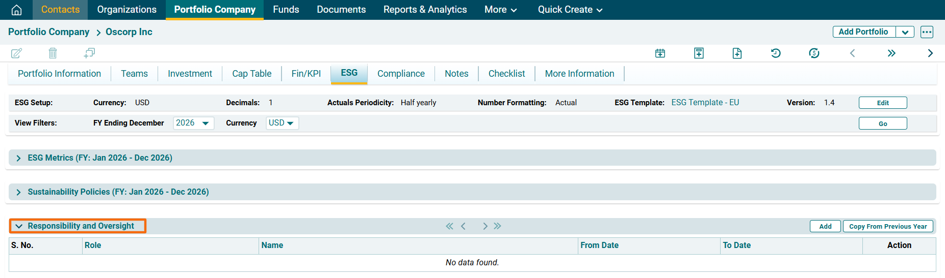 This panel allows you to assign roles and responsibilities related to ESG operations.