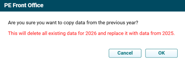 ) button in the top right corner of the panel to copy data from previous year. A pop up window is displayed. Click OK.