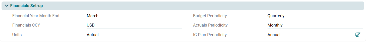 Financials Set Up