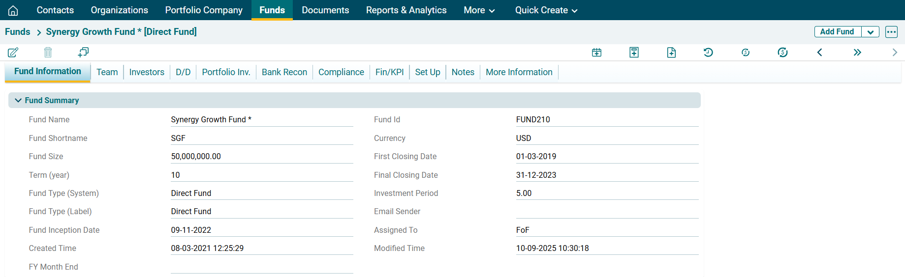 This tab contains the primary details pertaining to a fund at the time of creation. The various panels pertaining to the fund are discussed below:
