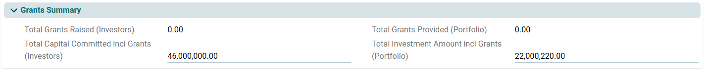This panel provides a summary of grants received either from investors or through the funds provided by the investee companies.