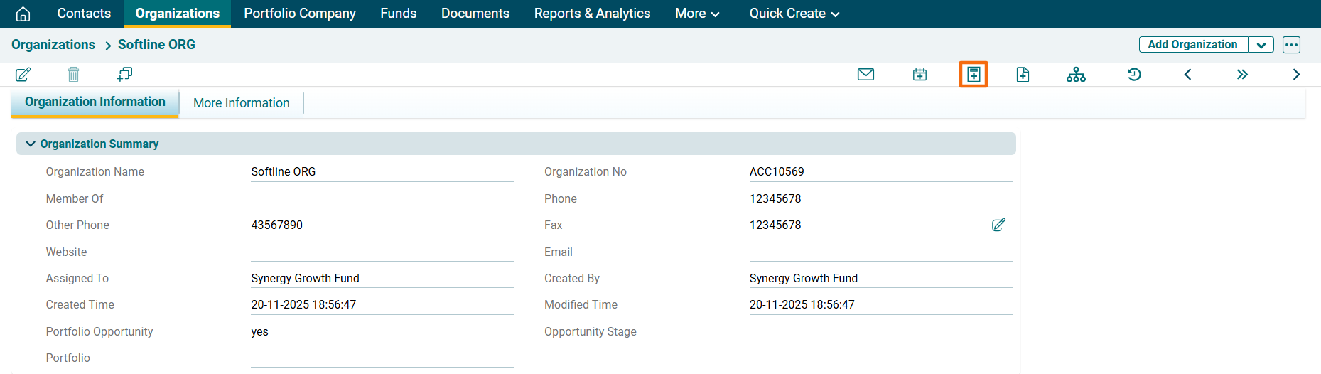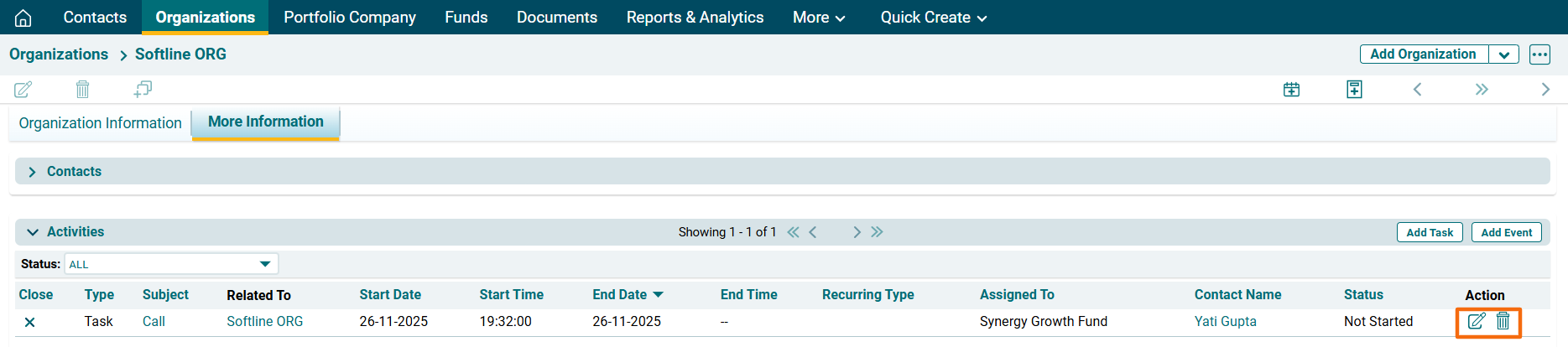 5. The Task will be listed in the Activities Panel under the More Information Tab. Click on the Edit or Delete icons to make changes.