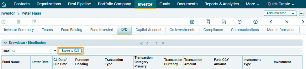 To export the Drawdown/ Distribution details into excel, click on Export to XLS button in the horizontal bar of the panel. The excel file will be downloaded.