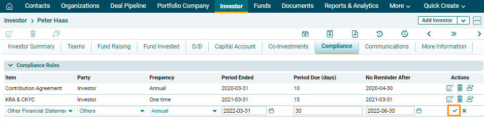- Party: To specify the party concerned, i.e. Investor or Others.