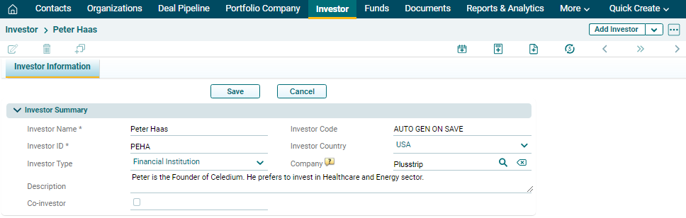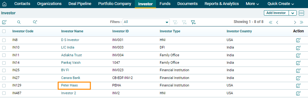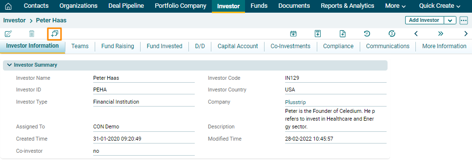 2. The Investor Information window is displayed. Click on the Duplicate icon in the top left corner.