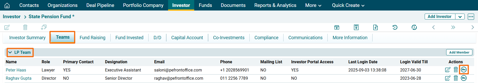 2. Navigate to the Teams tab> LP Teams. Click the Access Rights button in the Actions column.