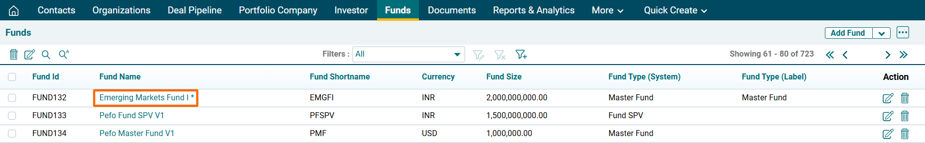 1. Click on Fund Name for which documents are to be uploaded.