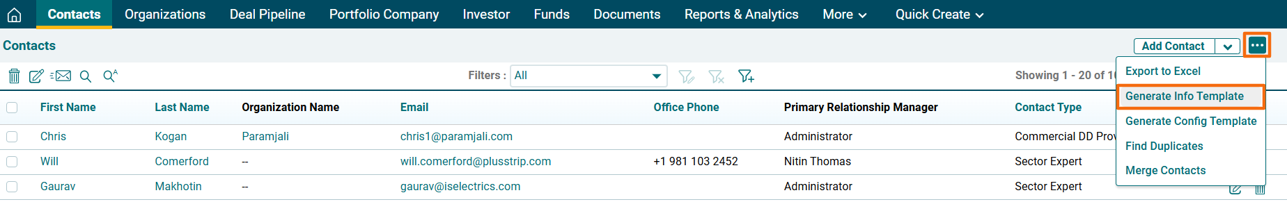 2. Click on the three dot menu in the top right corner. Click on Generate Info Template. The Excel file will download.
