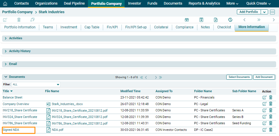 1. Click on Investee Company Name.