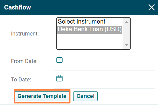 Loan Instrument. Enter the dates for which you wish to create the template.