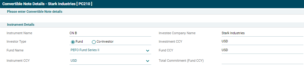 • Investor Type: Choose whether Fund or Co-investor is investing in the instrument.